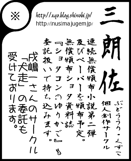 又、戌嶋一様個人サークル「犬走」様の委託品も扱います。